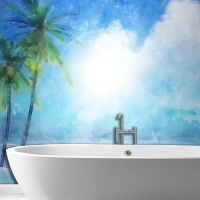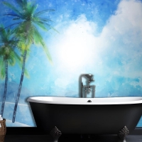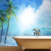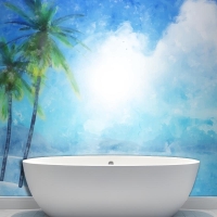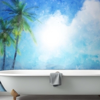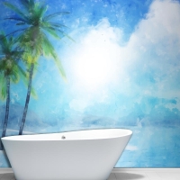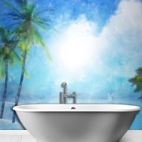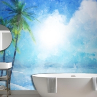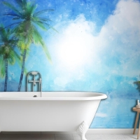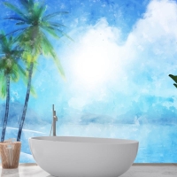 Suluboya Yaz Tropikal Banyo Duvar Kağıdı