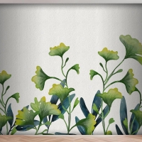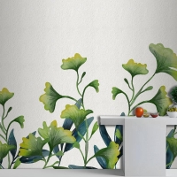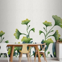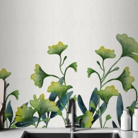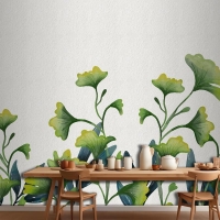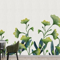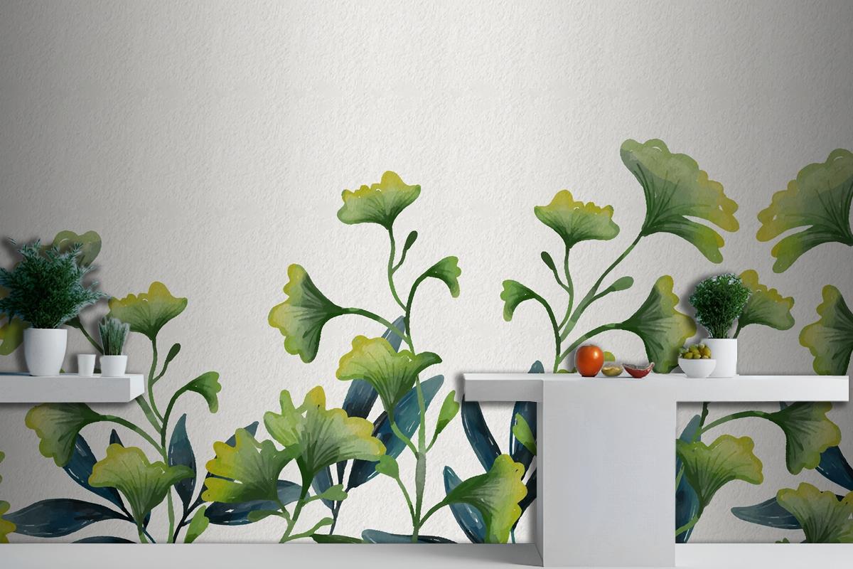 Suluboya Yeşil Yapraklar Mutfak Duvar Kağıdı
