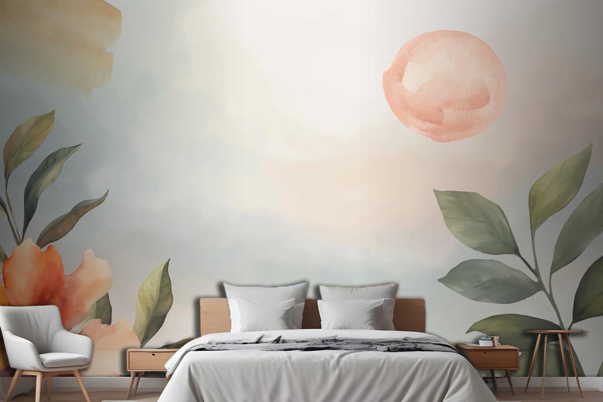 Suluboya Yumuşak Toprak Tonları Arka Plan Yatak Odası Duvar Kağıdı