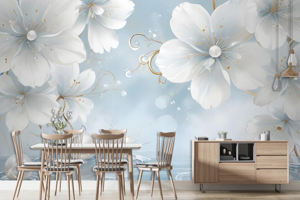 Takı Beyaz Lüks Çiçek Duvar Kağıdı