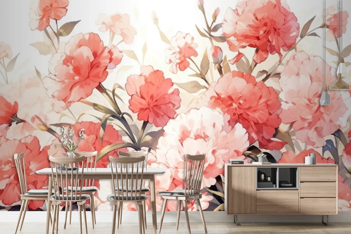 Tamamlayıcı Renklerle Suluboya Vintage Karanfil Deseni Duvar Kağıdı