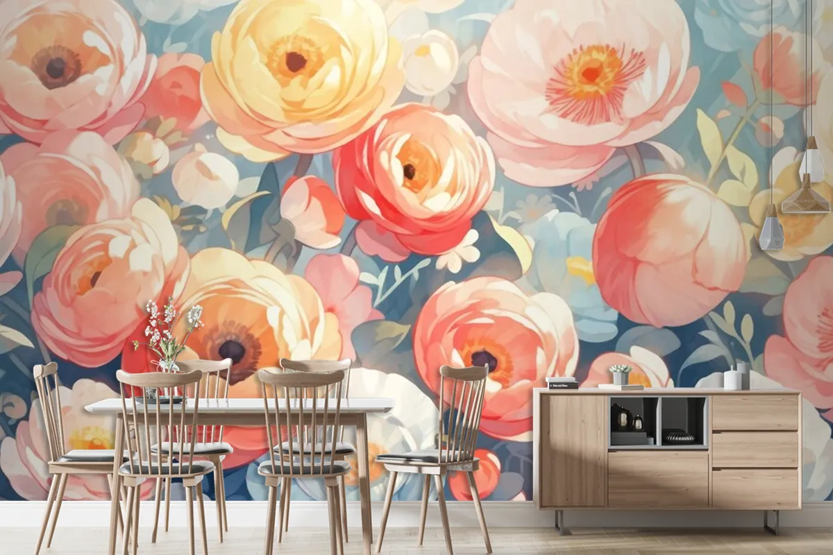 Tamamlayıcı Renklerle Vintage Suluboya Düğünçiçeği Tasarımı Duvar Kağıdı
