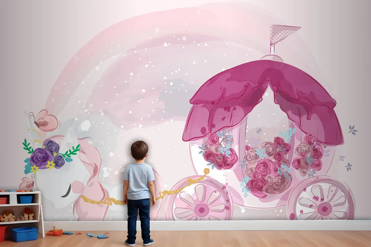 Tatlı Suluboya Tarzında Elle Çizilmiş Sevimli Bebek Tek Boynuzlu Çocuk Odası Duvar Kağıdı