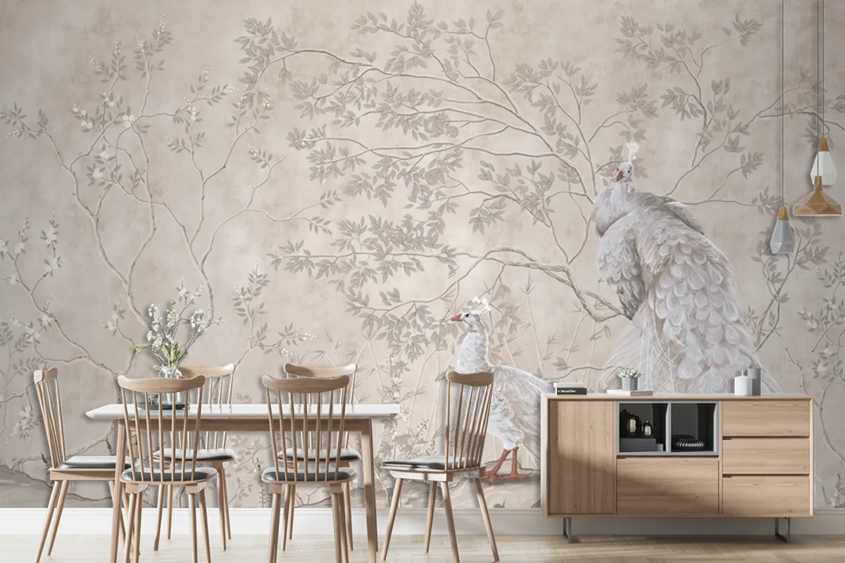 Tavus Kuşları Ve Ağaçlar İç Proje Duvar Kağıdı Duvar Tasarımı İçin Tasarım