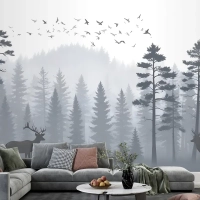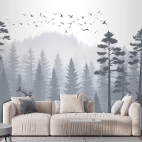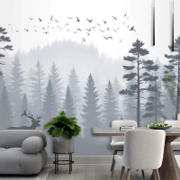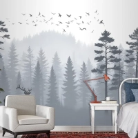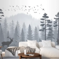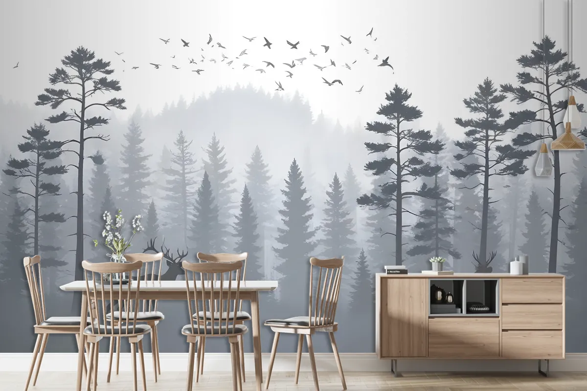 Tek Renkli Dağ Ve Orman Manzarası Duvar Kağıdı