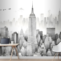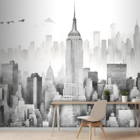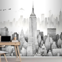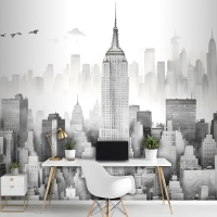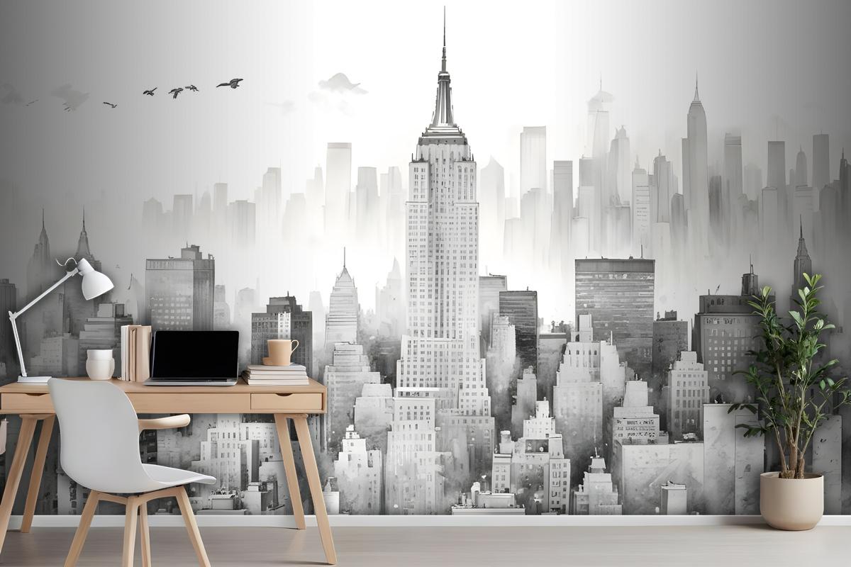 Tek Renkli Kömür New York Şehri Siyah Beyaz Duvar Kağıdı