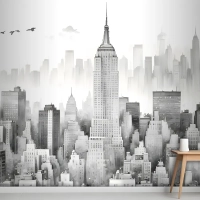 Tek Renkli Kömür New York Şehri Siyah Beyaz Duvar Kağıdı