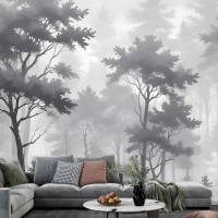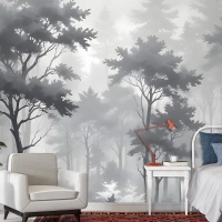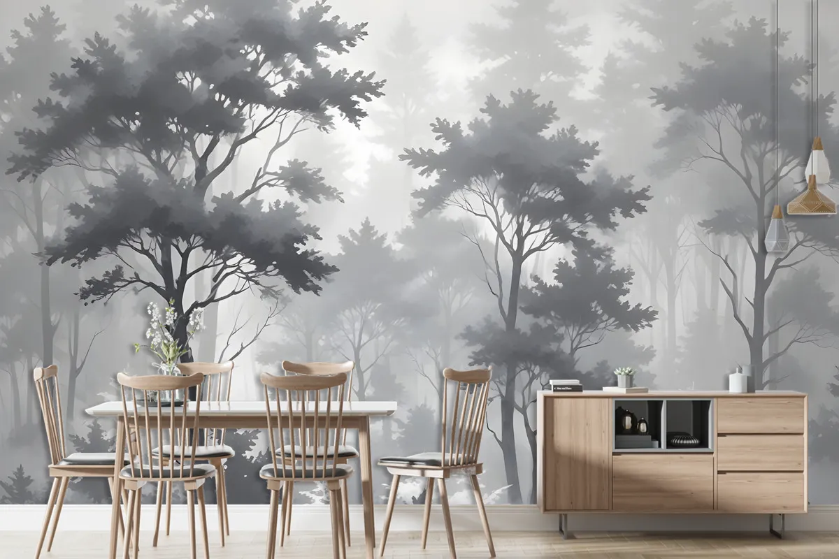 Tek Renkli Orman Siluet Manzara Duvar Kağıdı
