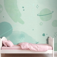 Tek Renkli Suluboya Galaxy Çocuk Odası Duvar Kağıdı