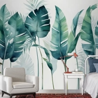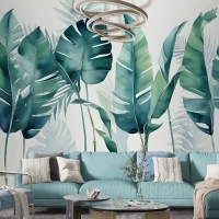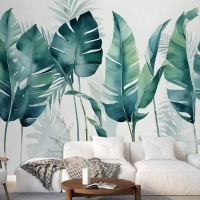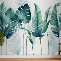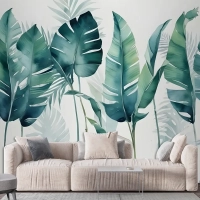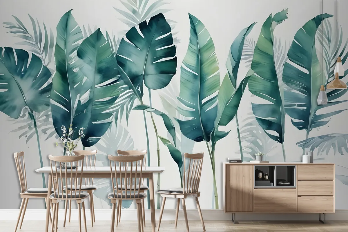 Tek Renkli Yeşil Muz Yaprağı Duvar Kağıdı