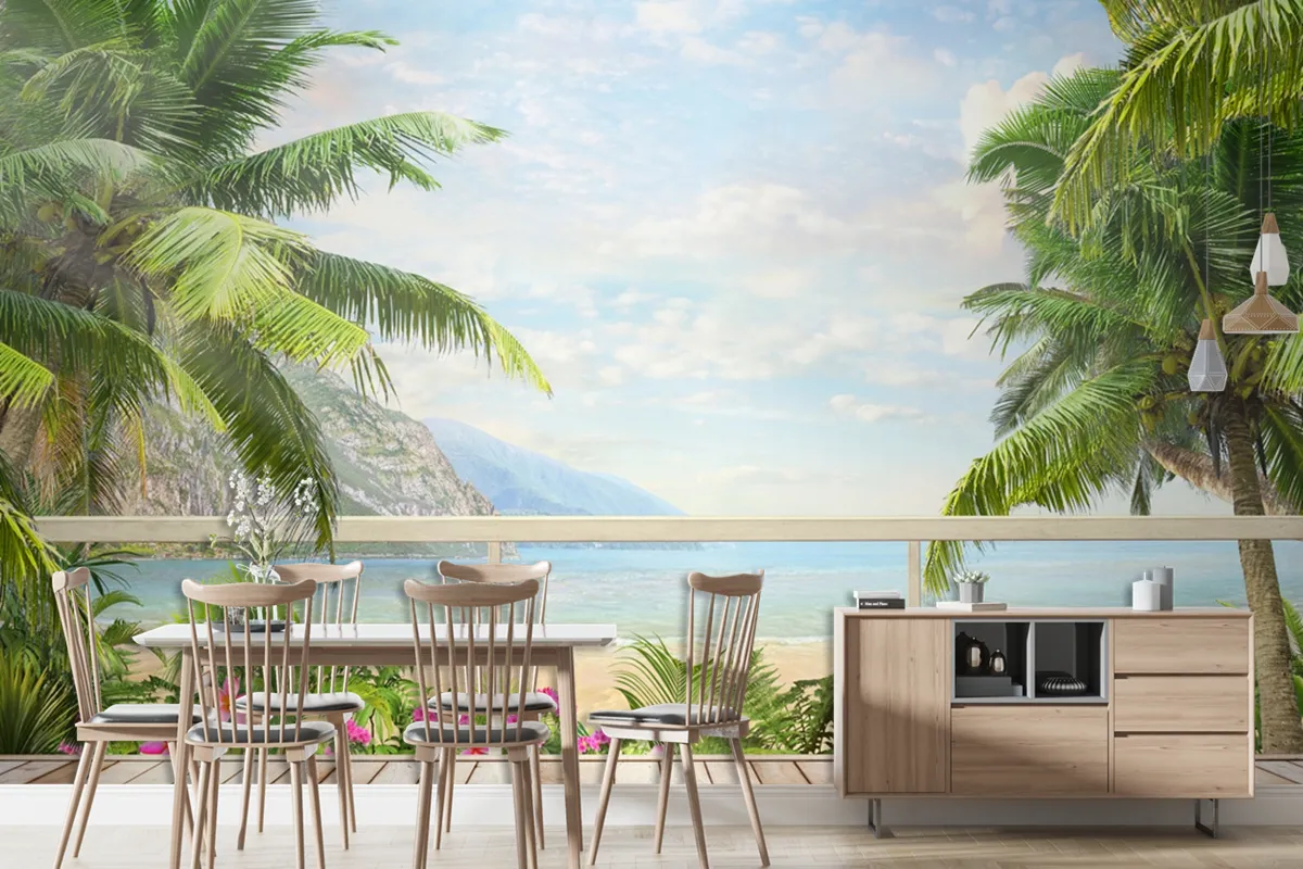 Tropikal Balkon Manzarası Duvar Kağıdı