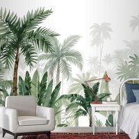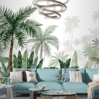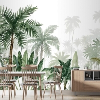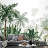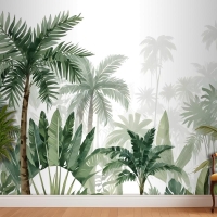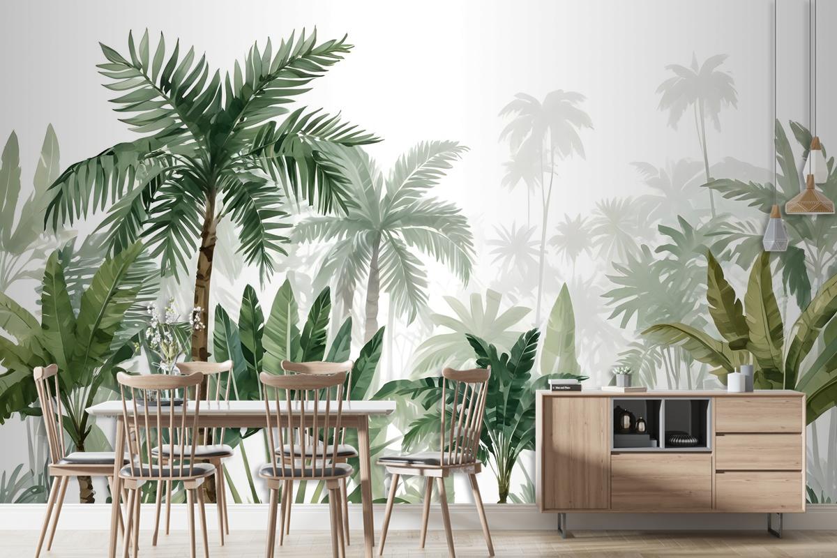 Tropikal Karikatür Palmiye Ağacı Ve Muz Yaprakları Duvar Kağıdı