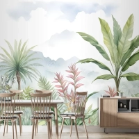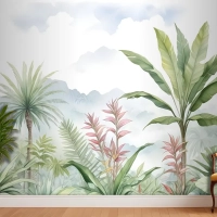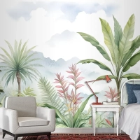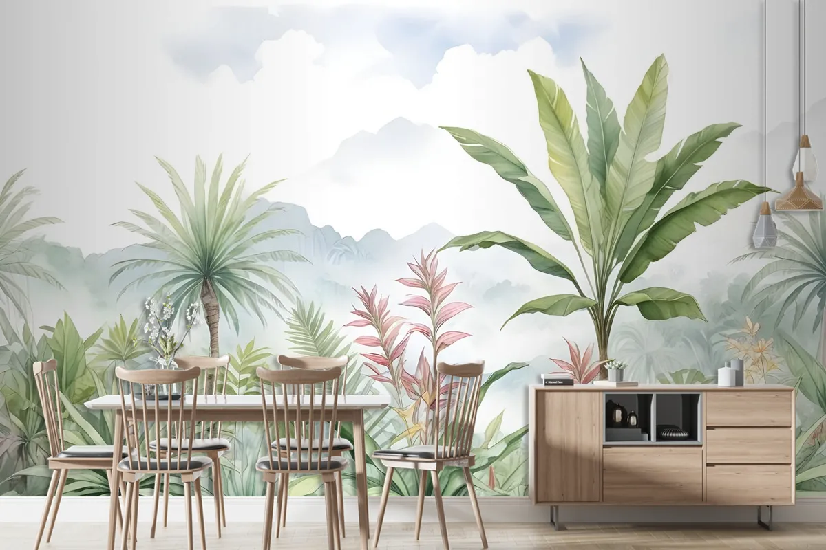 Tropikal Orman Manzarası Ve Muz Ağaçları Duvar Kağıdı