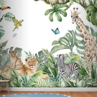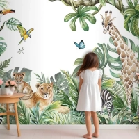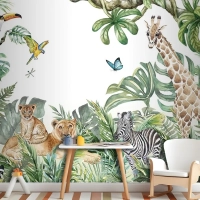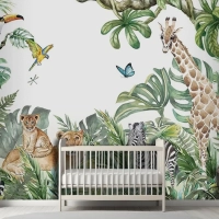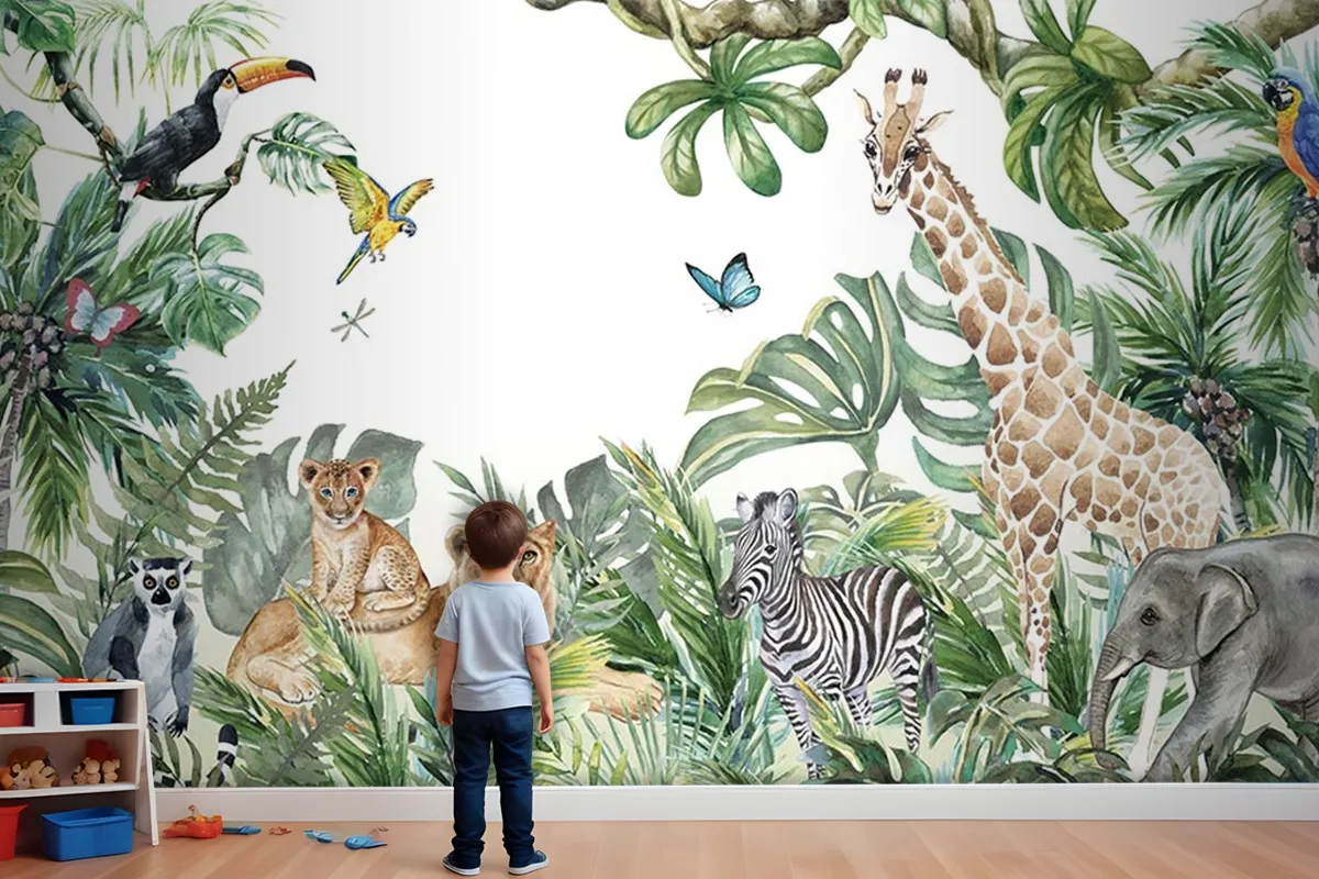 Tropikal Safari Hayvanlari Çocuk Odası Duvar Kağıdı