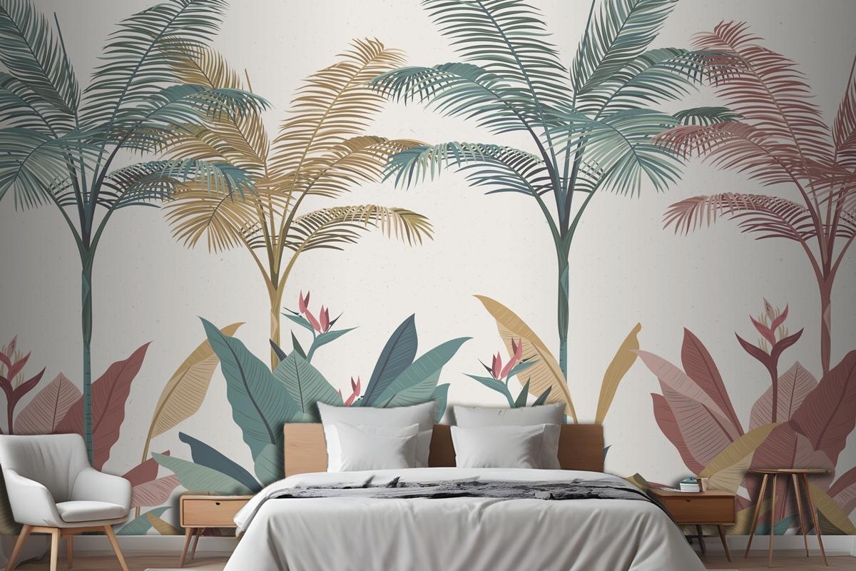 Tropikal Tasarım Yatak Odası Duvar Kağıdı