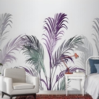 Tropikal Taze Mor Yeşil Palmiye Yaprakları Duvar Kağıdı