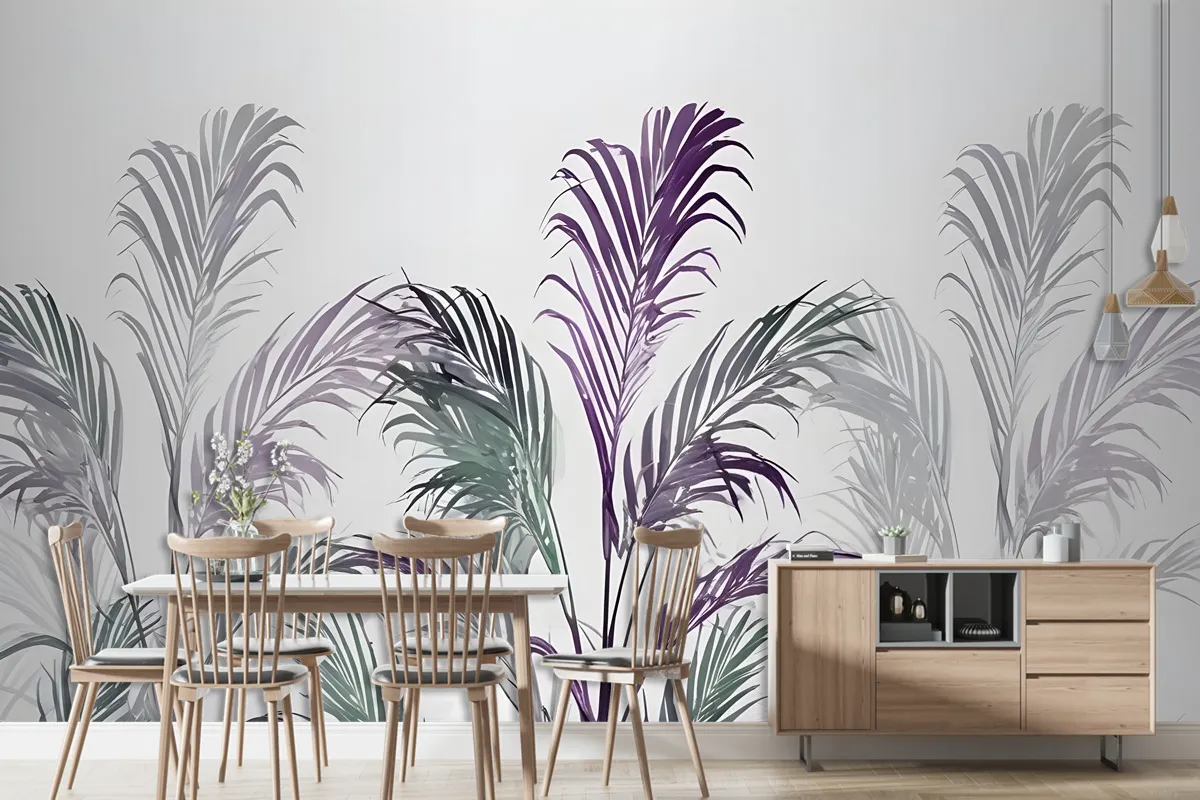 Tropikal Taze Mor Yeşil Palmiye Yaprakları Duvar Kağıdı
