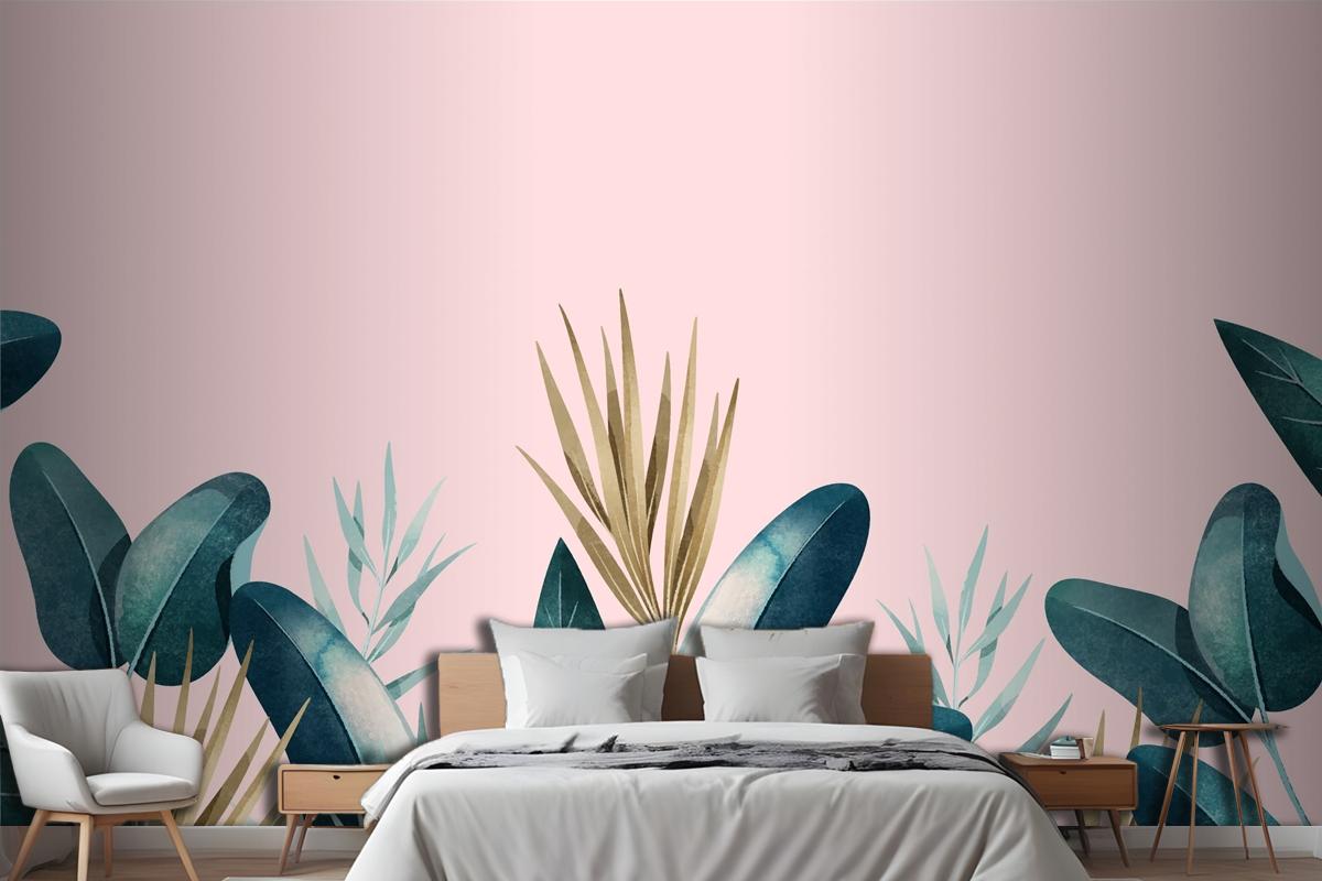 Tropikal Yaprak Yatak Odası Duvar Kağıdı