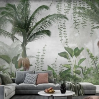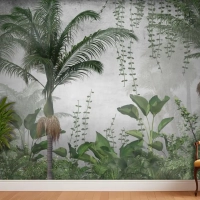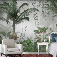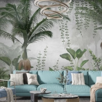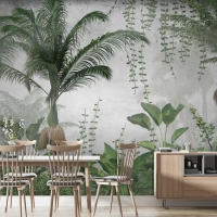 Tropikal Yapraklı 3D Görünümlü Pembe Flamingo Duvar Kağıdı