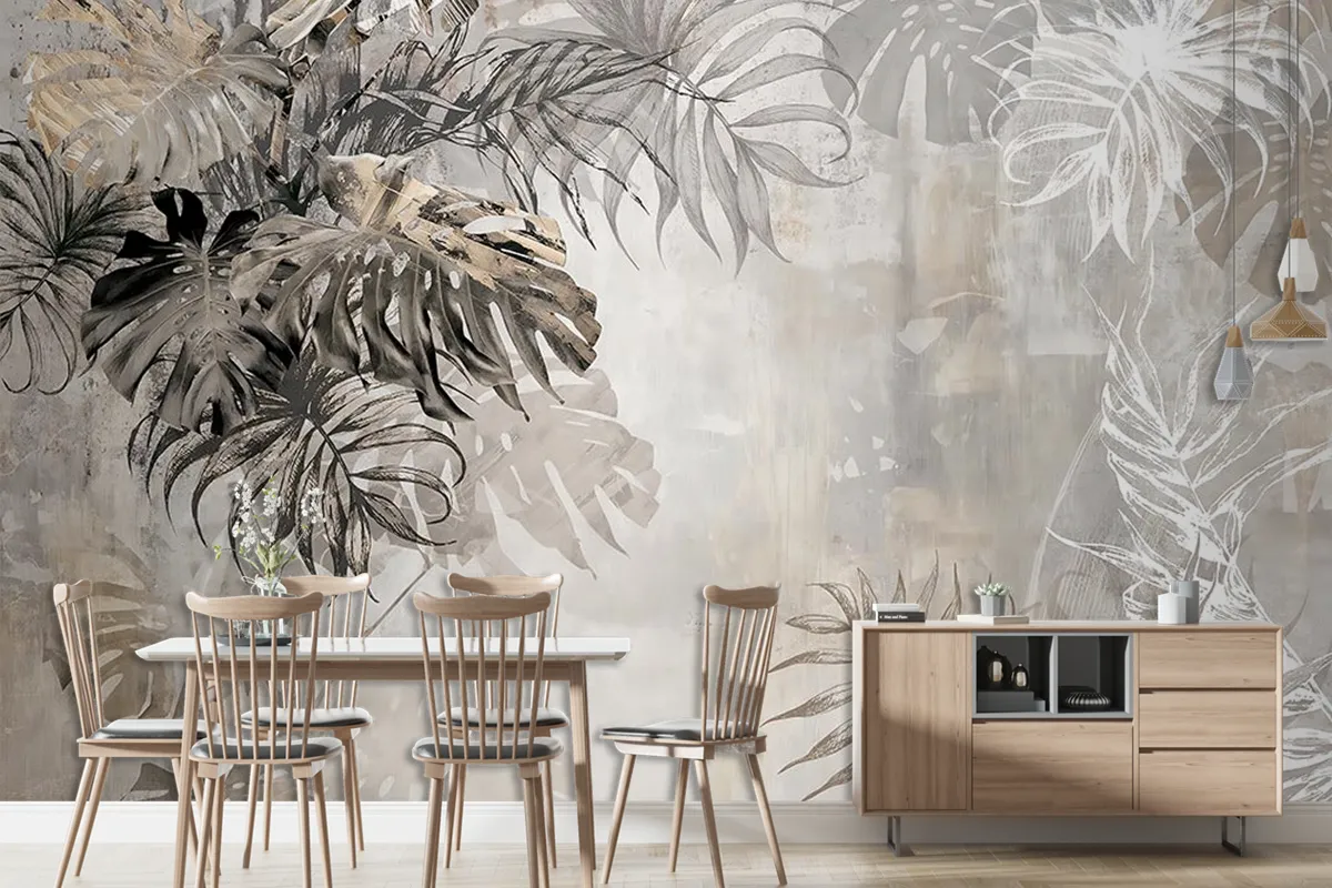 Tropikal Yapraklı Duvar Kağıdı Yaprak Desen Duvar Kağıdı