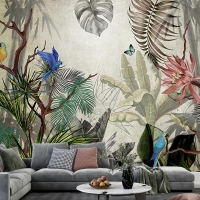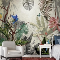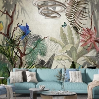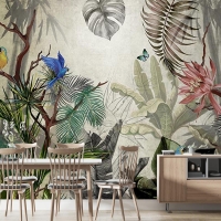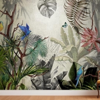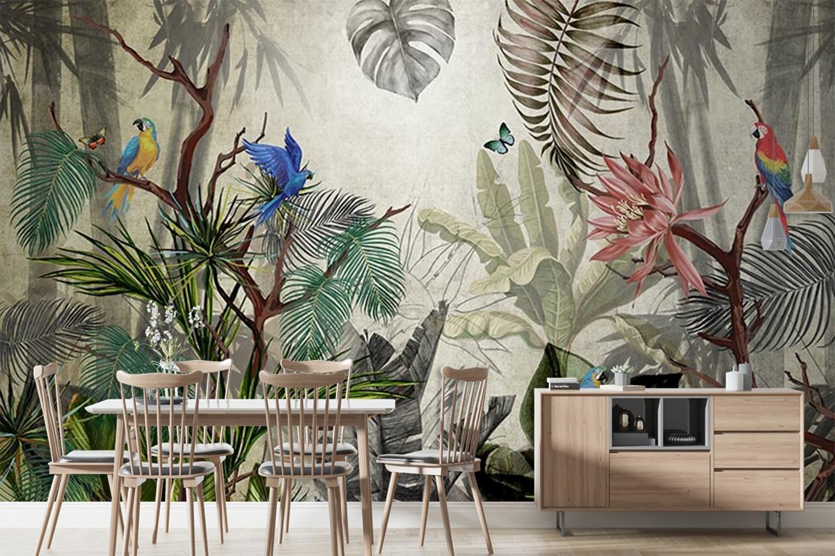 Tropikal Yeşil Yapraklar Ve Çiçekler Duvar Kağıtları