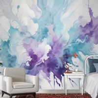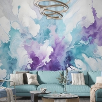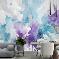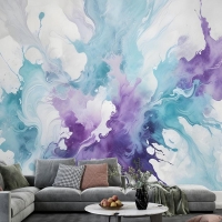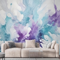 Turkuaz Mor Mermer Tarzı Fırça Duvar Kağıdı