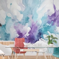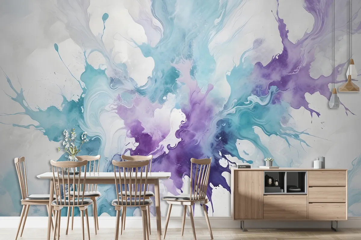 Turkuaz Mor Mermer Tarzı Fırça Duvar Kağıdı