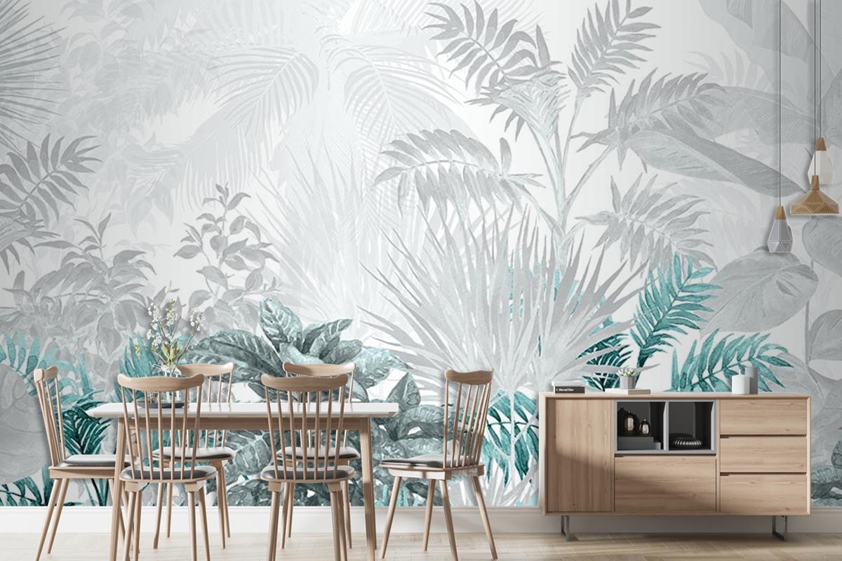 Turkuaz Tropikal Ağaçlar Ve Yapraklar Duvar Kağıdı
