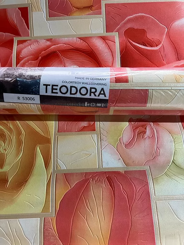 Turuncu Çiçek Desen Ucuz Duvar Kağıdı 53006