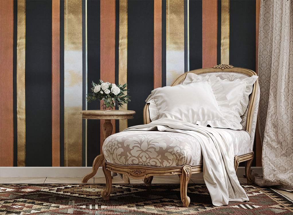 Turuncu Gold Çizgili Duvar Kağıdı 53482