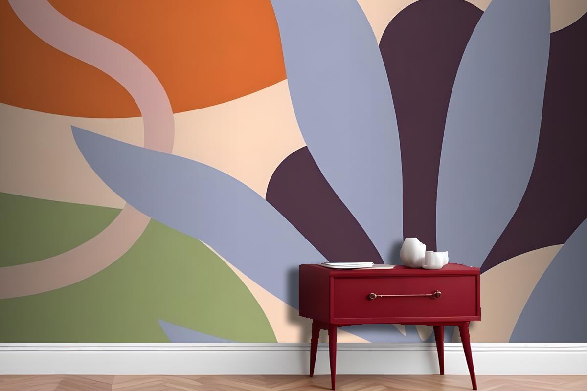 Turuncu Mor Gri Ve Yeşil Tonlarında Soyut Renkli Şekiller Ve Formlar Antre Hol Koridor Duvar Kağıdı