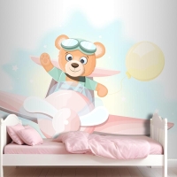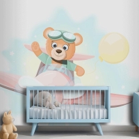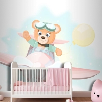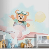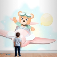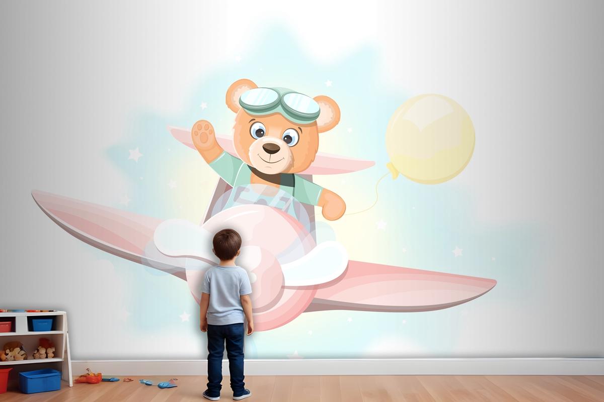 Uçakta Uçan Mutlu Ayıcık Çocuk Odası Duvar Kağıdı