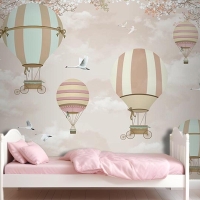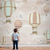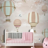 Uçan Balonlar Çiçekler Ve Kuşlar Çocuk Odası Duvar Kağıdı