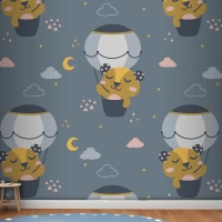Uçan Sevimli Ayı İskandinav Desen Çocuk Odası Duvar Kağıdı