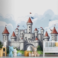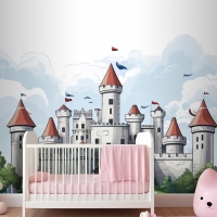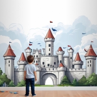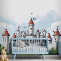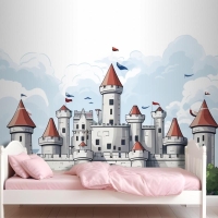 Üstünde Bayrak Bulunan Kale Çocuk Odası Duvar Kağıdı
