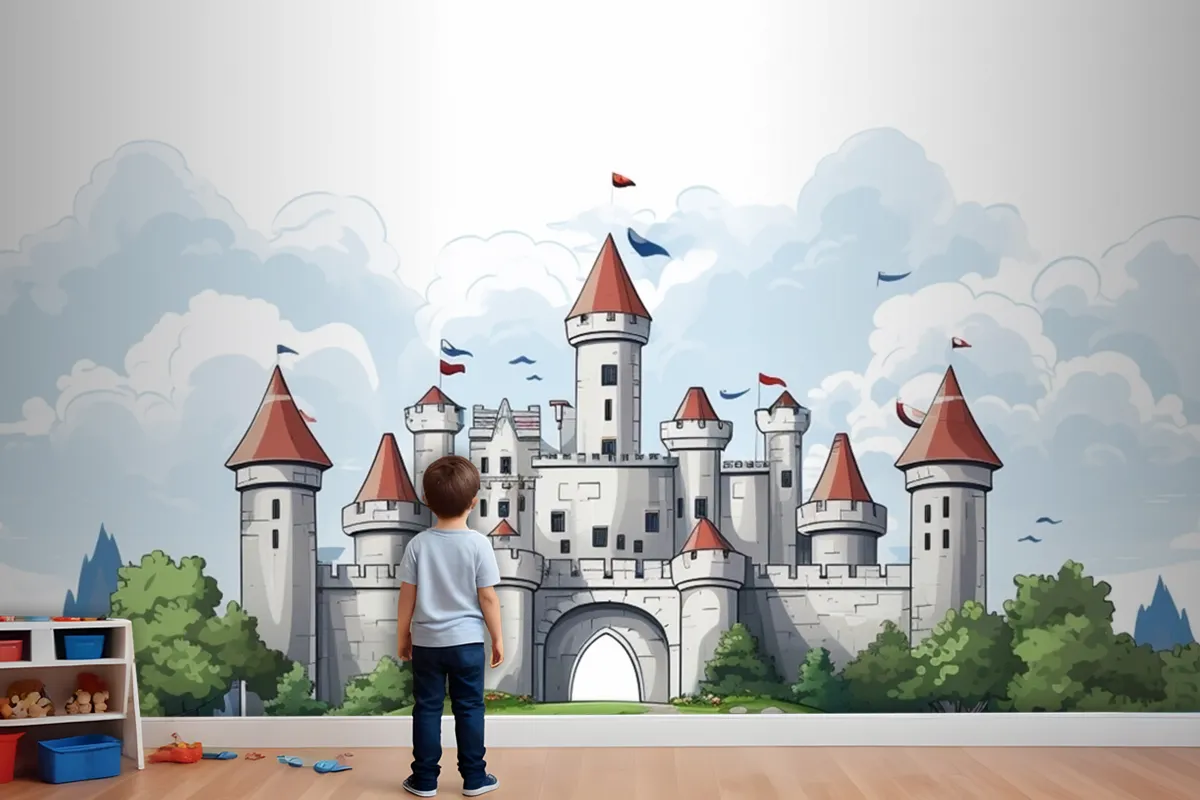 Üstünde Bayrak Bulunan Kale Çocuk Odası Duvar Kağıdı