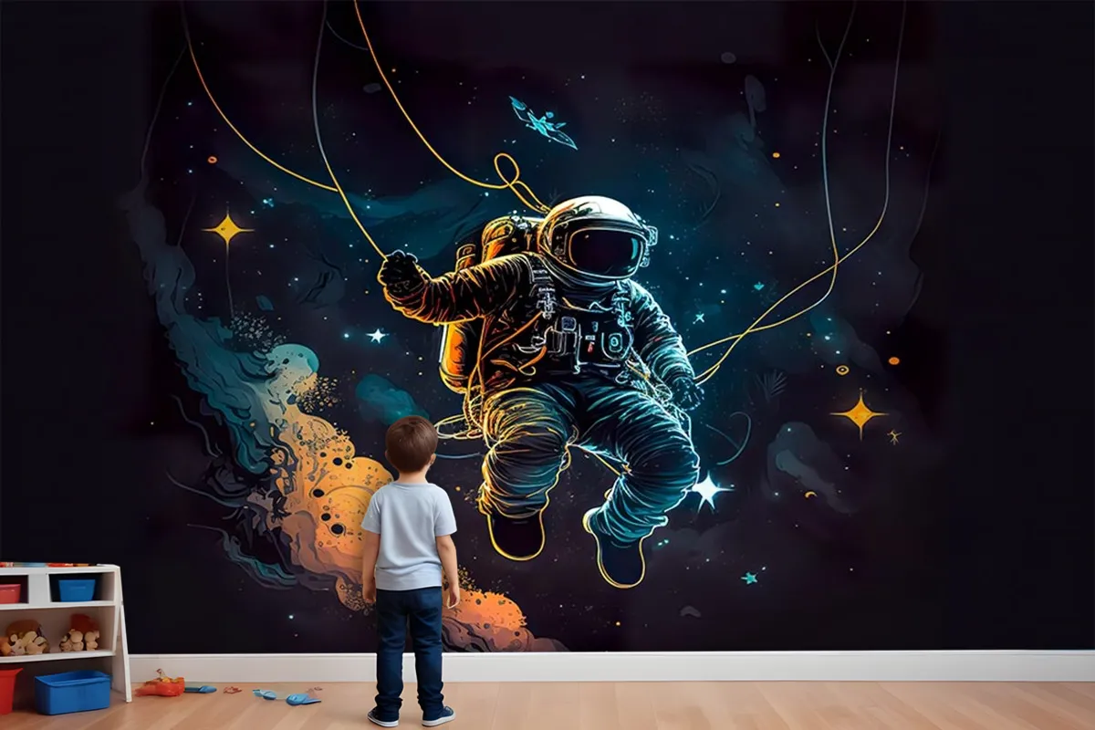 Uzay Astronot Çocuk Odası Duvar Kağıdı