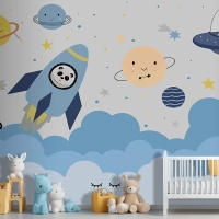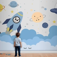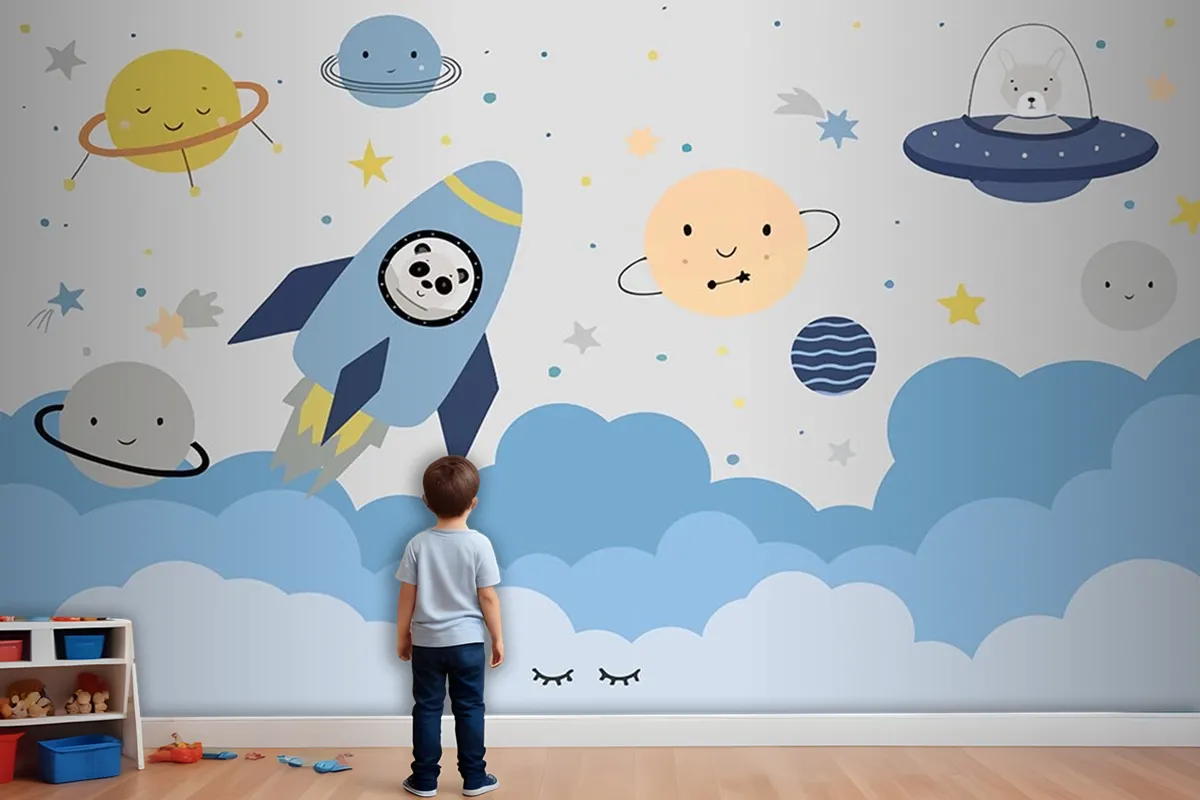 Uzay Gemisi Çocuk Odası Çocuk Odası Duvar Kağıdı