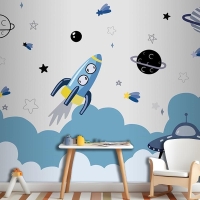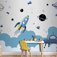 Uzay Temalı Çocuk Odası Duvar Kağıdı Astronot Çocuk Odası Duvar Kağıdı