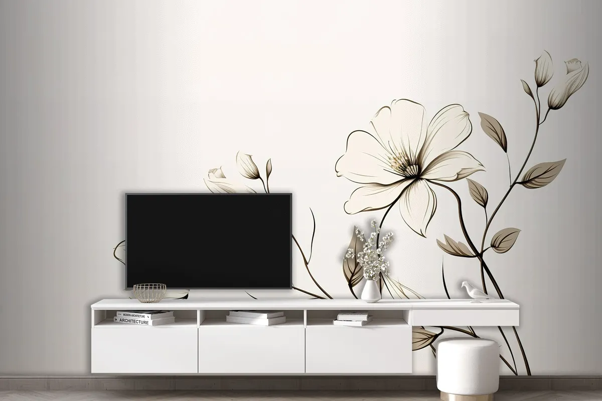 Üzerinde Çiçekler Bulunan Bir Dalın Çizimi Tv Arkası Duvar Kağıdı