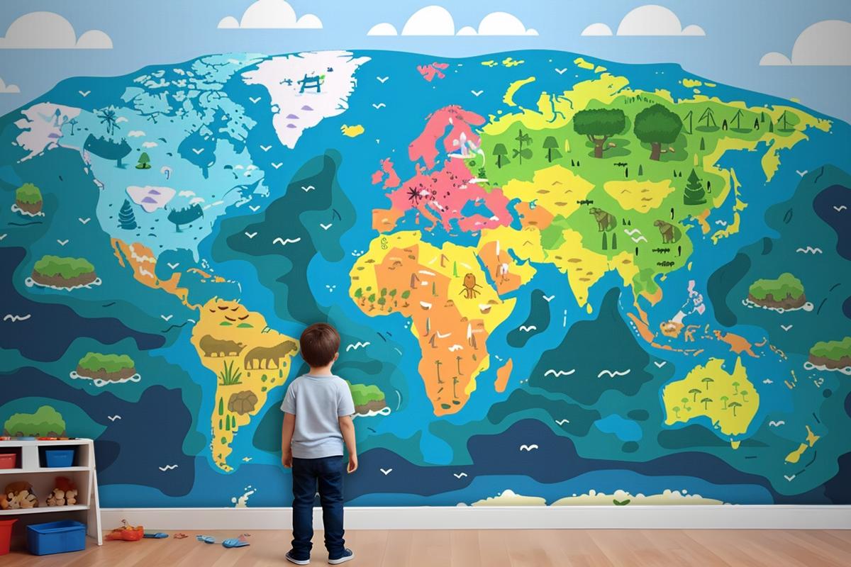 Üzerinde "Dünyadan Alıntı" Sözlerinin Bulunduğu Dünya Haritası Çocuk Odası Duvar Kağıdı