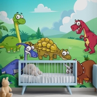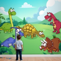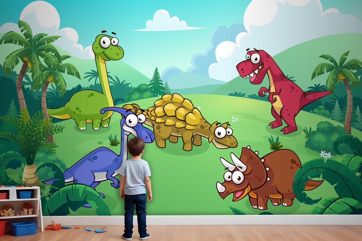 Vahşi Çocuk Odası Duvar Kağıdı Duvarındaki Dinozor