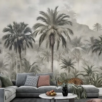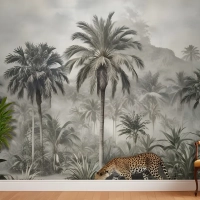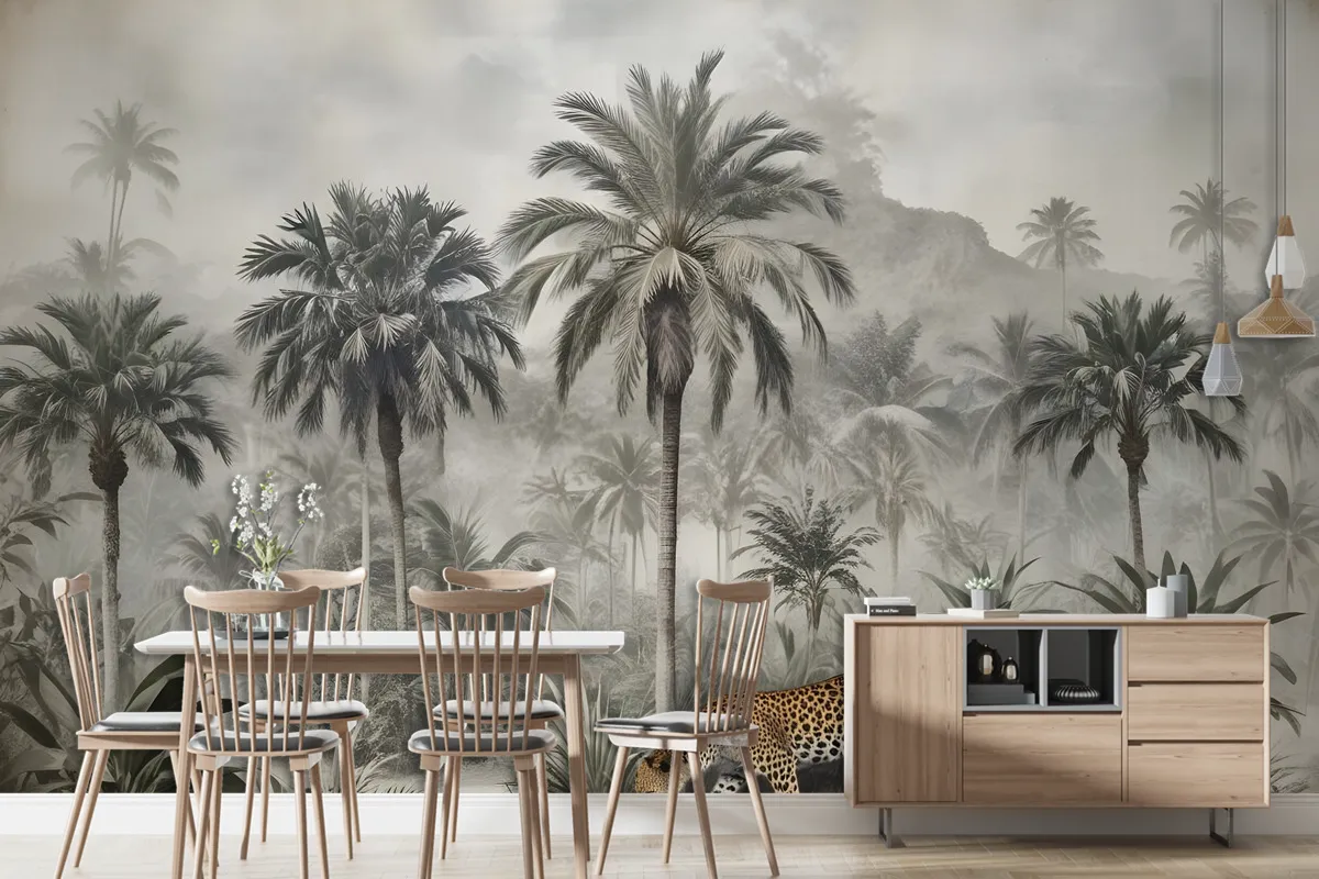 Vahşi Leopar Duvar Kağıdı Ile Vintage Egzotik Manzara