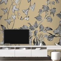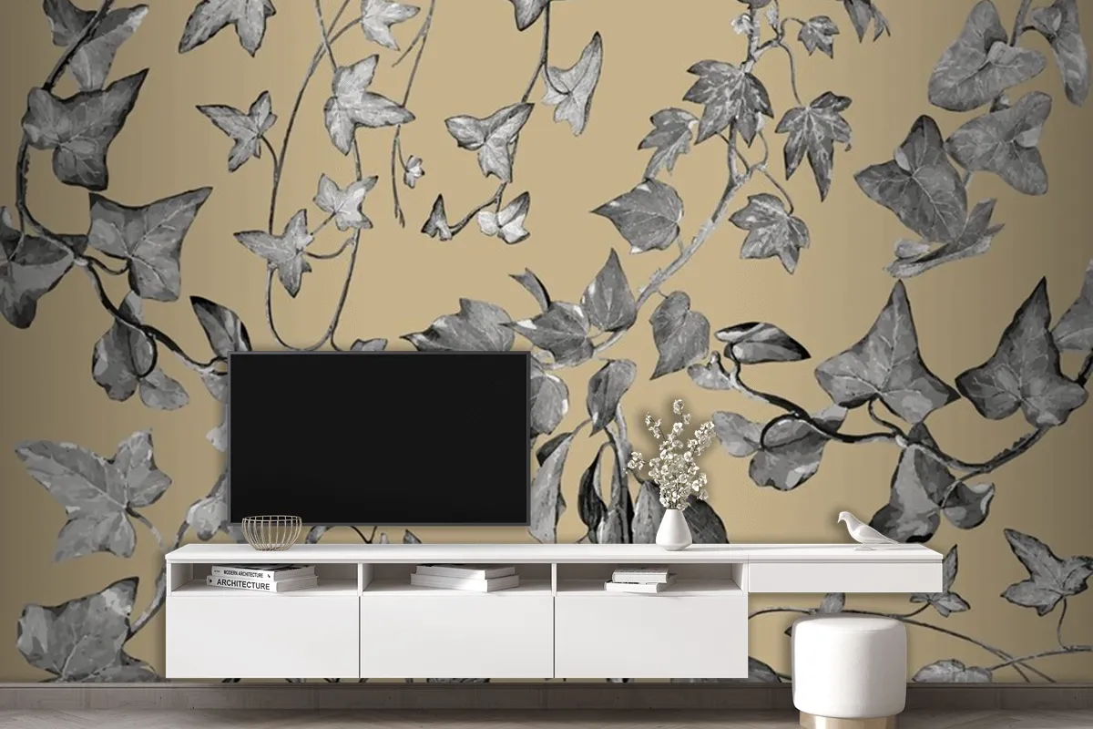 Vintage Bitkiler Ve Yapraklar Oturma Odası Duvar Kağıdı