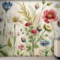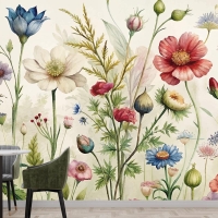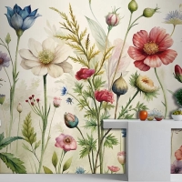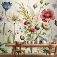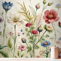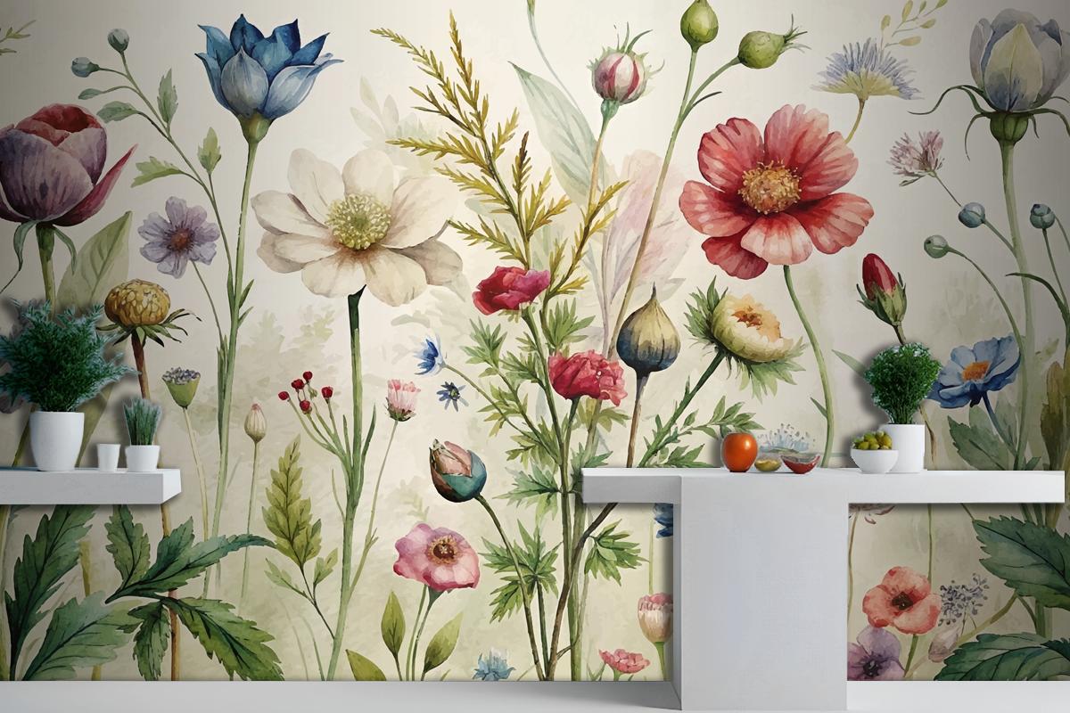 Vintage Botanik Tarzı Kır Çiçeği Suluboya Mutfak Duvar Kağıdı