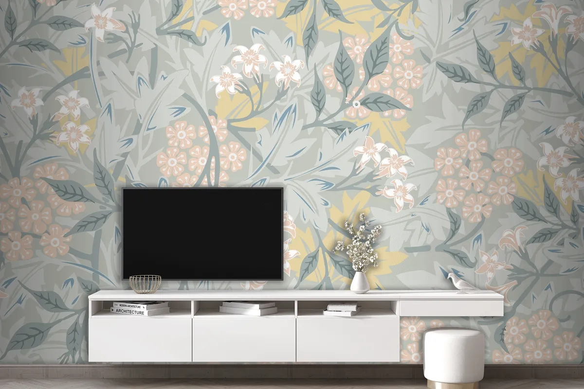 Vintage Botanik Tasarım Oturma Odası Duvar Kağıdı