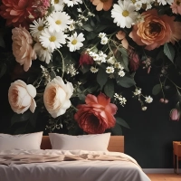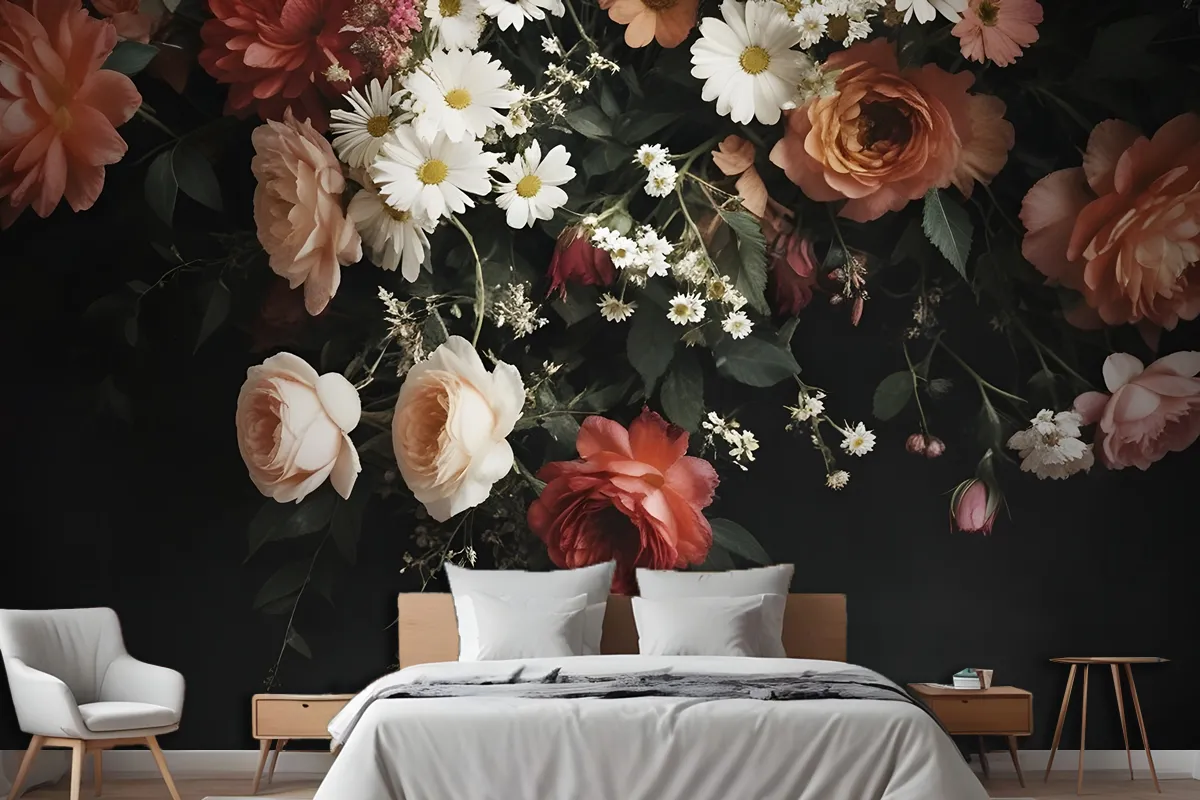 Vintage Canlı Çiçek Buketi Yatak Odası Duvar Kağıdı