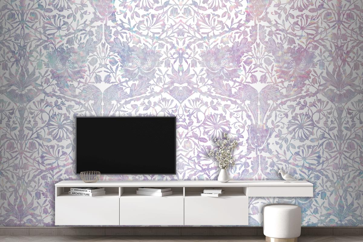 Vintage Çiçek Holografik Desenli Remix Duvar Kağıdı