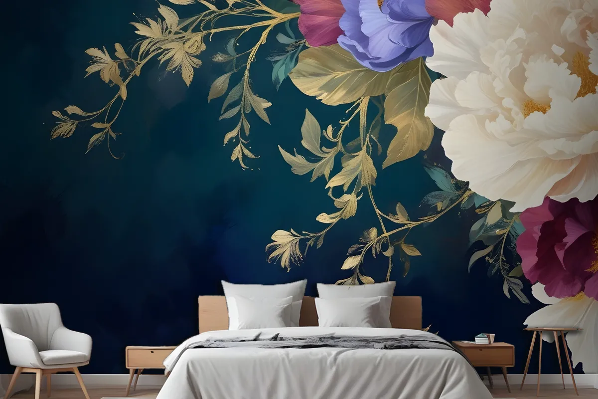 Vintage Çiçekli Sanat Yatak Odası Duvar Kağıdı