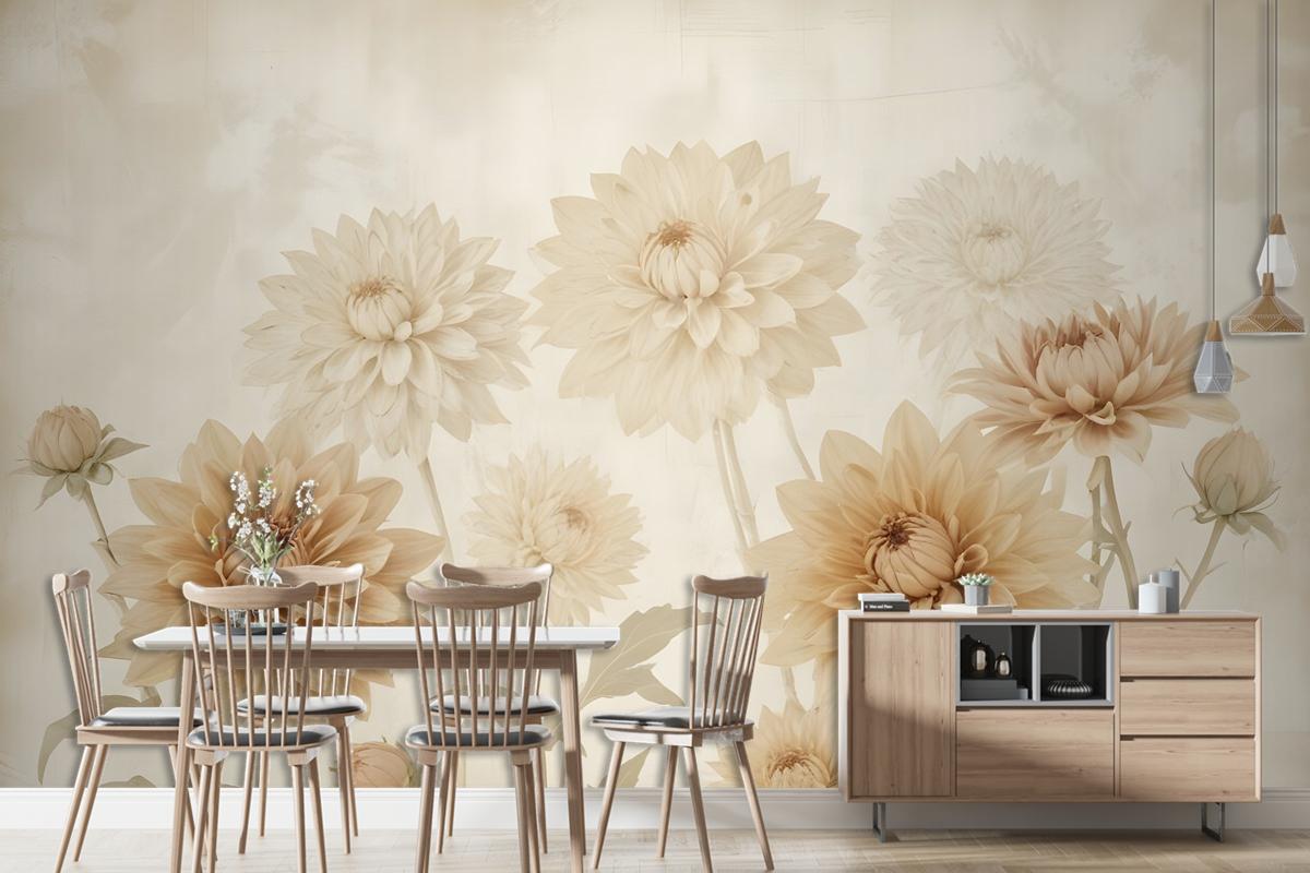 Vintage Dahlia Çiçek Duvar Kağıdı
